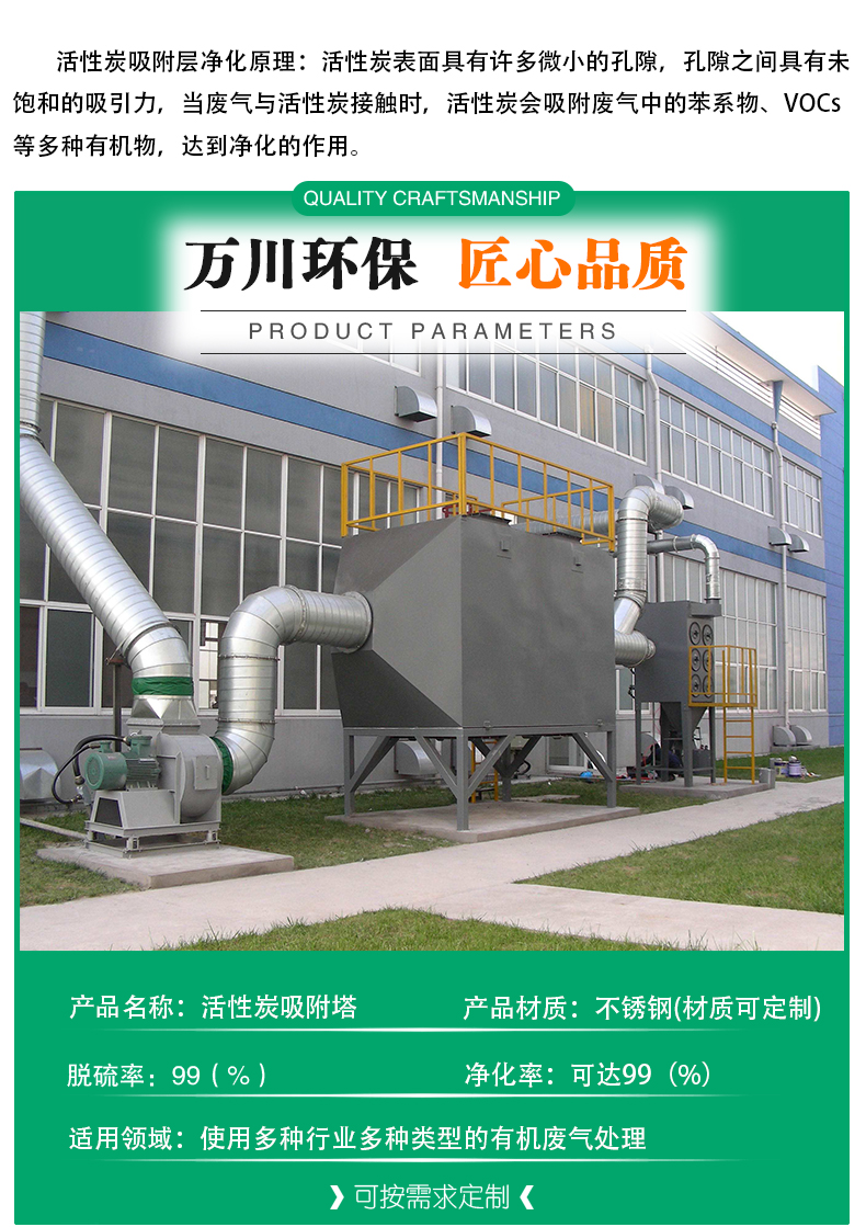 簡介:活性炭被廣泛應用于工業上,再后來發明了活性炭吸附塔。活性炭吸附裝置是利用活性炭的原理設計而成的,活性炭表面具有許多孔隙,這些孔隙之間存在著吸引力,當廢氣與活性炭接觸時,可以吸附廢氣分子,所以在很多工廠都會看到活性炭吸附塔的身影。