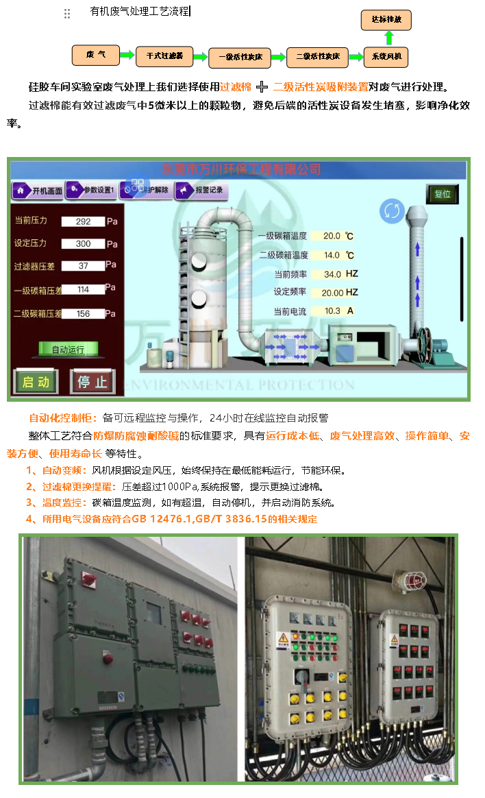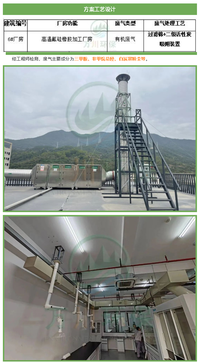 簡介: 深圳市xxx新材料科技有限公司,是國家高新技術企業,致力于氟硅材料的研究及開發30余年。萬川環保受邀對硅膠材料實驗室廢氣進行處理。本文介紹了硅膠材料實驗室廢氣處理中說使用的設備與方案。